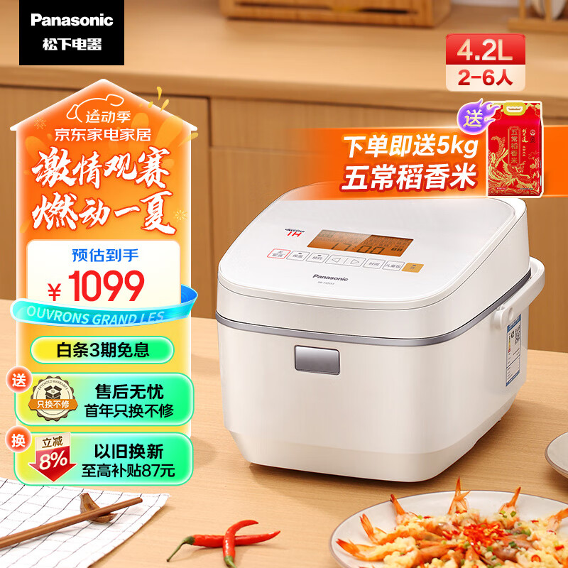 松下(Panasonic)电饭煲电饭锅4.2L家用IH变频加热 3-8人多功能电饭煲 备长炭内胆 可预约 SR-HQ153价格:1099.00元!