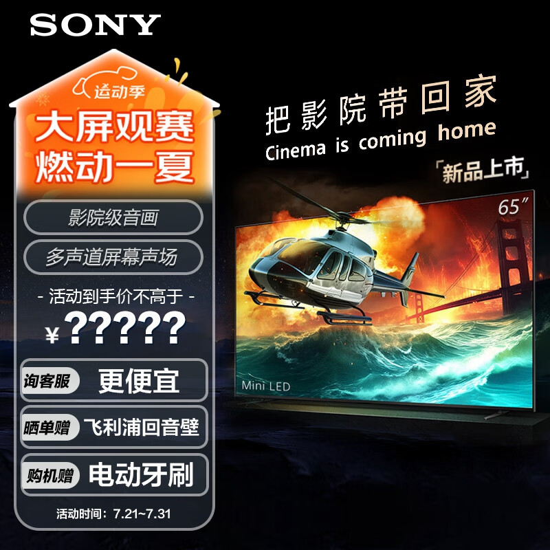 索尼(SONY) 新品 65英寸 索尼电视7系 MiniLED电视 AI画质音质优化 XR认知芯片 旗舰液晶 K-65XR70价格:12799.00元!