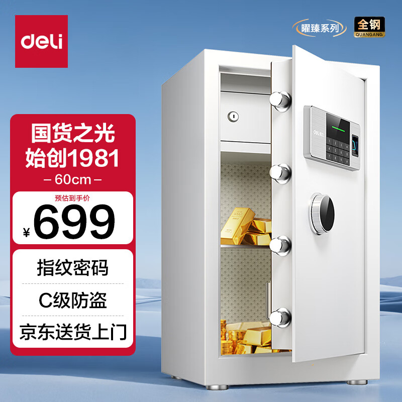 得力保险柜 家用办公指纹密码保险箱小型财务专用保密箱防盗可入墙入柜保管柜 60cm钻石白 曜臻系列价格:699.00元!