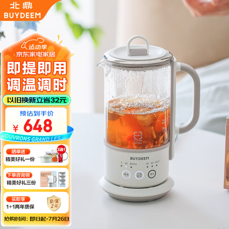 北鼎(Buydeem)养生壶烧水壶多功能煮茶器迷你养生杯办公室便携分体式煮茶器 K36本白色(不含萃取篮)价格:648.00元!