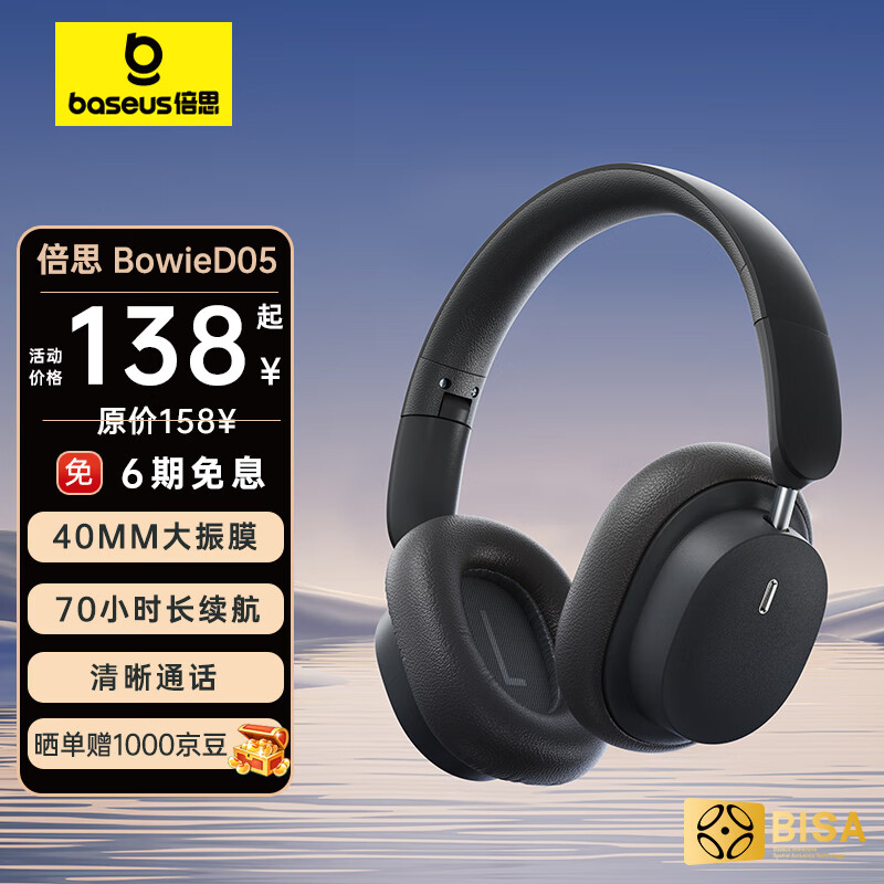 倍思 D05耳机头戴式蓝牙耳机真无线耳机高音质音乐超长续航学生电脑游戏运动跑步隔音折叠包耳式 灰黑价格:158.00元!