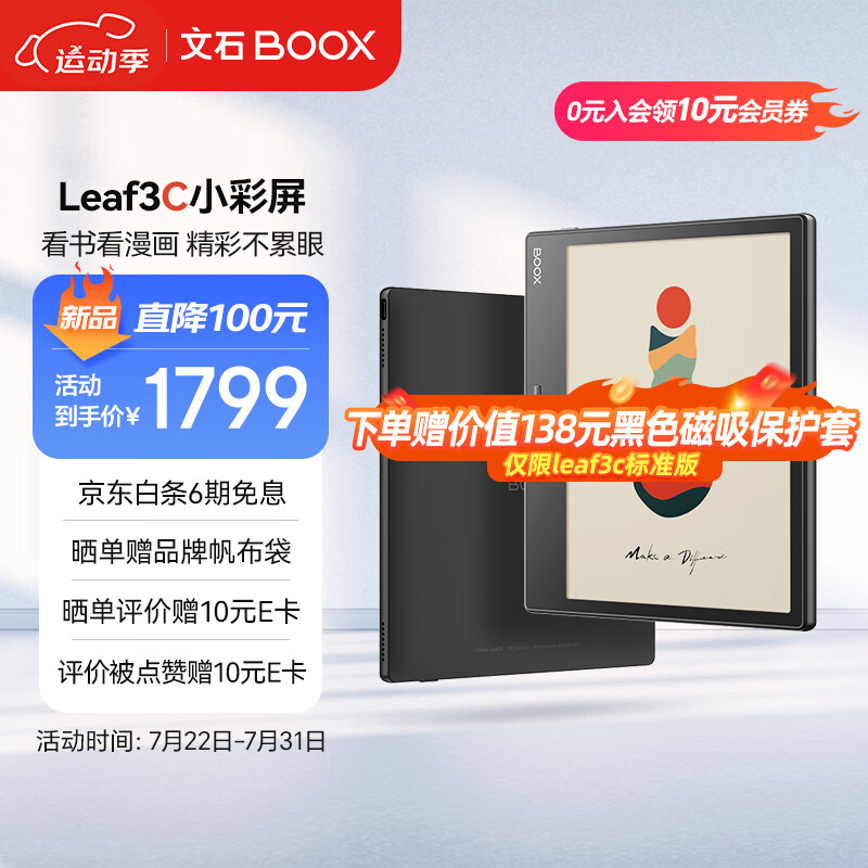 BOOX文石Leaf3C 7英寸彩屏电子书阅读器平板 彩色墨水屏电纸书电子纸 便携阅读看书 电子笔记本价格:1799.00元!