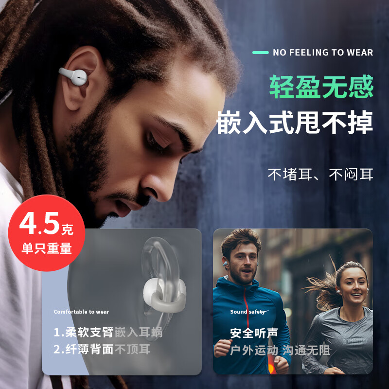 蛇圣C5新款真无线蓝牙耳机双耳开放式非骨传导概念升级气传导不入耳舒适运动跑步健身夹耳夹式通话降噪 雾霾蓝|定向传声新概念|久戴不痛 兼容苹果安卓系统手机通用价格:299.00元!