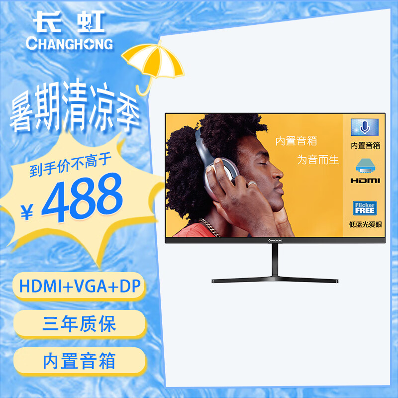 长虹 23.8英寸内置音箱显示器FHD全高清75Hz DP+HDMI+VGA接口 低蓝光爱眼 电脑显示屏 24G650F-S价格:599.00元!