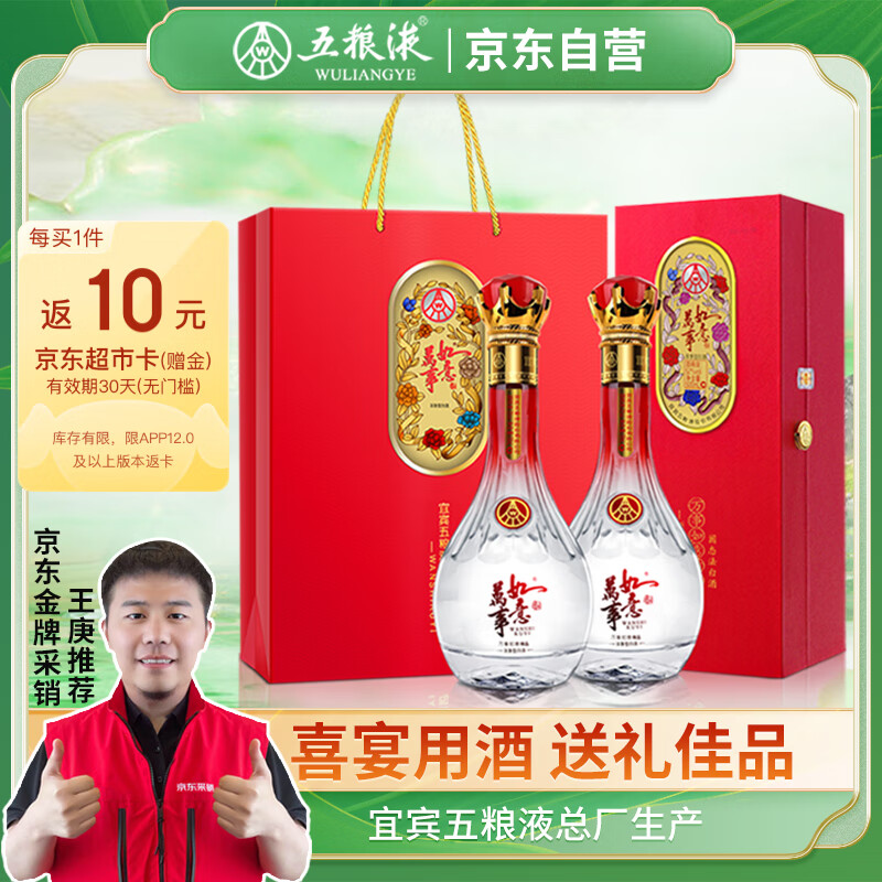 五粮液股份 中秋送礼 万事如意精品52度500ml*2瓶纯粮食浓香型白酒价格:597.00元!