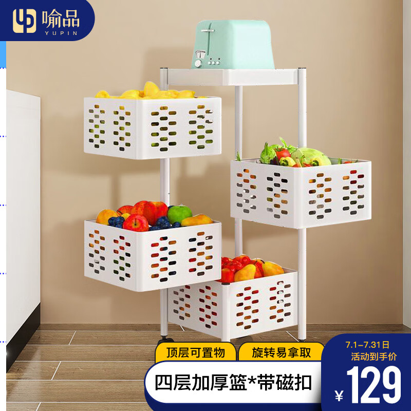 喻品置物架落地厨房收纳储物架菜篮子可移动推车果蔬架ZW92四层白价格:149.00元!