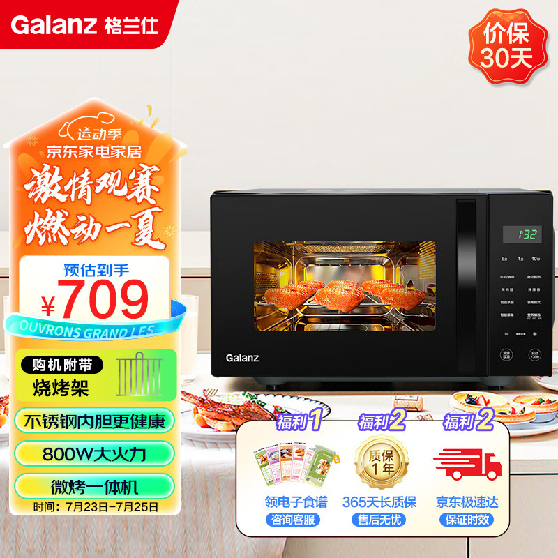 格兰仕(Galanz)不锈钢微波炉家用烤箱一体机光波炉800W速热23L平板微烤一体机C2(S2)价格:709.00元!