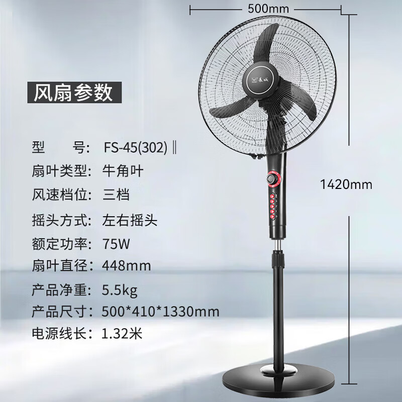 长城(CHANGCHENG)电风扇落地扇18吋商用风扇家用大风量摇头电扇居家办公立式风扇FS一45(302)ll价格:129.90元!