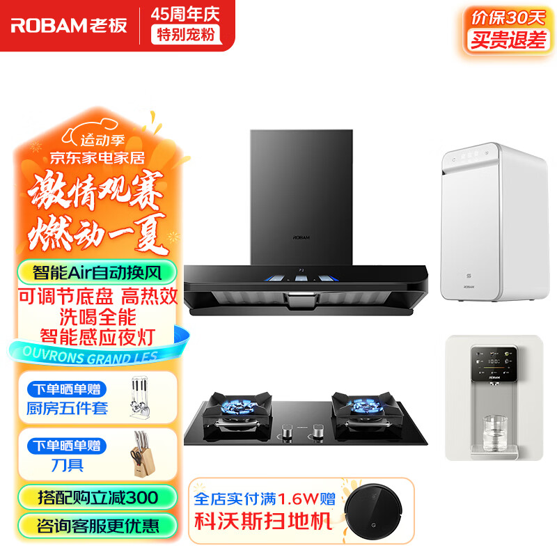 老板(Robam)钢琴家侧吸烟灶净水管线机四件套62D3S+57B2D+JV332A+GX08价格:8497.00元!