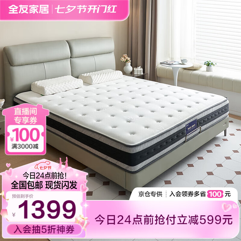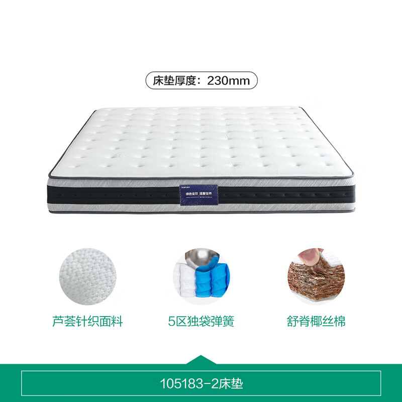 全友家居 5区独立袋装弹簧乳胶床垫正面芦荟针织面料软硬适中105183-2价格:1998.57元!