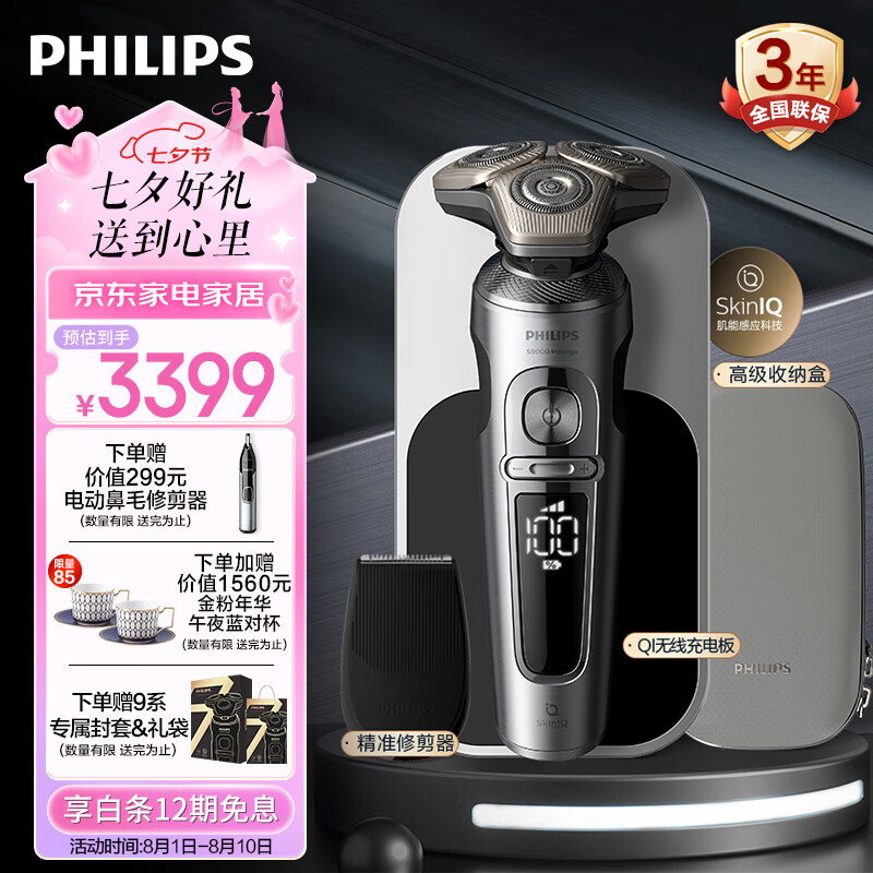 飞利浦(PHILIPS)电动剃须刀蜂巢奢享9系 SkinIQ肌能感应刮胡刀 送男友 送老公【整机荷兰进口】七夕情人节礼物价格:3669.00元!