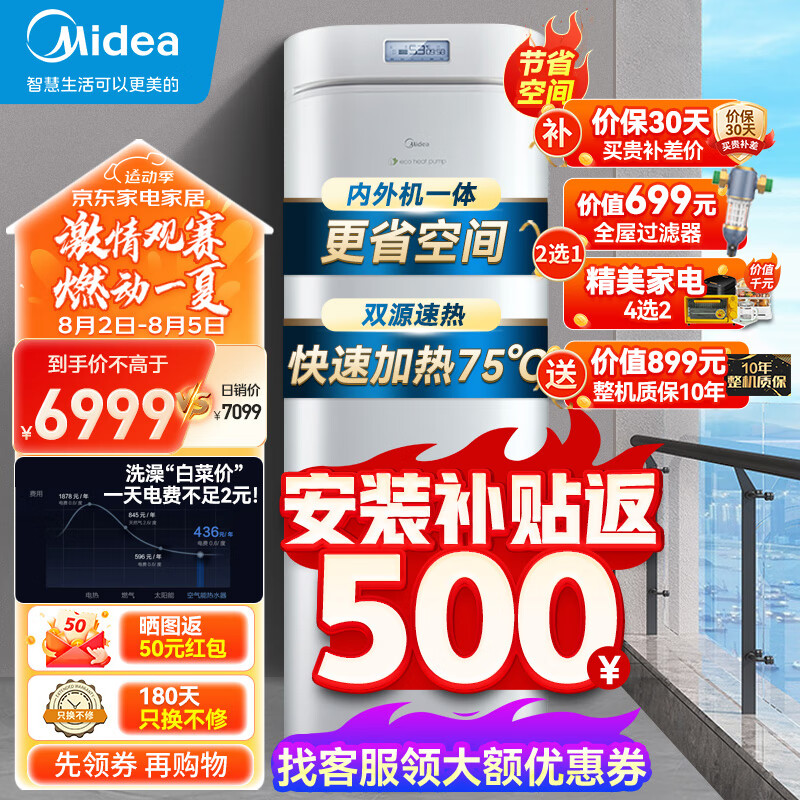 美的( Midea) 空气能热水器一体机WIFI智控双源速热75°高温180升包安装家用 RSJ-18/180RDN3-E2价格:7099.00元!