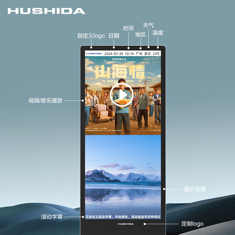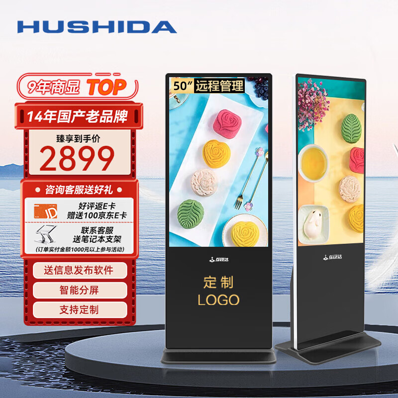 互视达(HUSHIDA)(三年质保)50英寸立式广告机显示屏 落地式高清液晶宣传屏显示器网络版非触控触摸 LS-50价格:2899.00元!