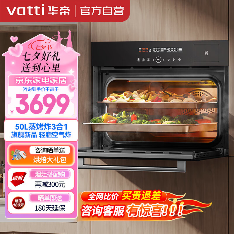华帝(VATTI)50L蒸烤箱一体机嵌入式家用 蒸烤炸三合一 大容量 烘焙多功能 蒸箱烤箱 搪瓷内胆 i23023价格:3999.00元!