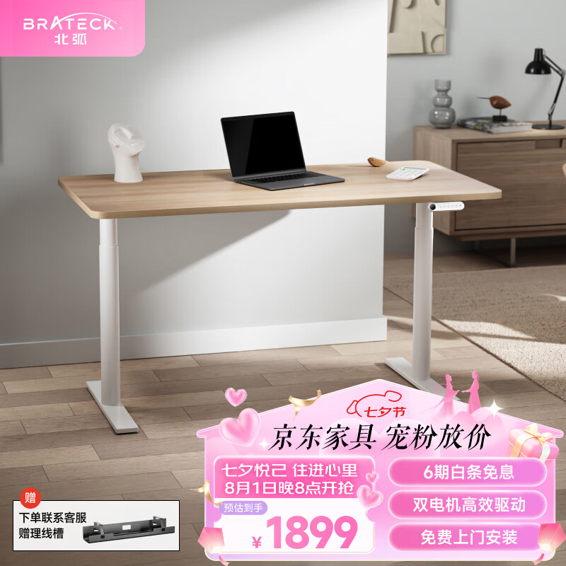 Brateck双电机电动升降电脑桌 北弧站立办公升降书桌 升降台 M1黄1.2米价格:2179.00元!
