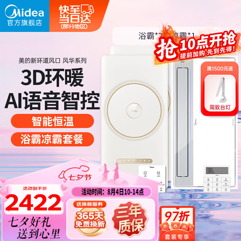 美的(Midea)风暖浴霸集成吊顶卫生间取暖器浴室环形智能双电机语音换气暖风机价格:2422.00元!