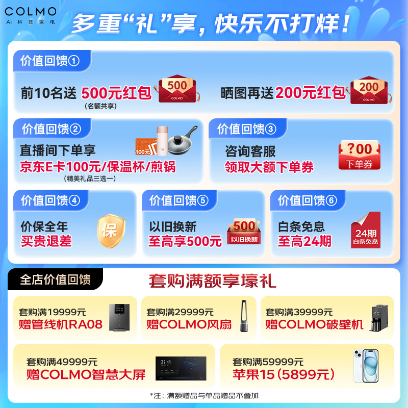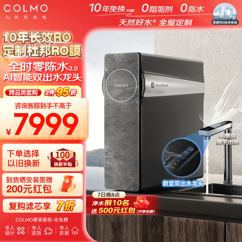 COLMO净水器B162 家用净水机厨房厨下式净饮机直饮机 10年RO反渗透净水机1200G大通量双出水龙头价格:7999.00元!