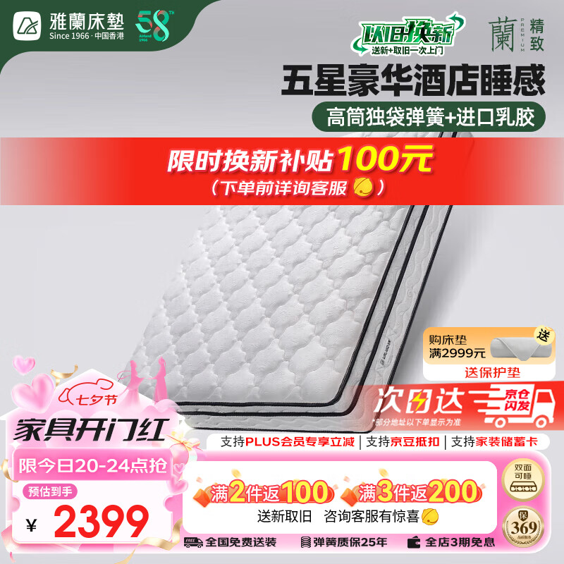 雅兰进口乳胶软硬适中独袋弹簧席梦思床垫 金梦豪尊享版1.5*2米价格:2999.00元!