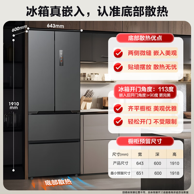 美的(Midea)M60系列419法式多门四开门电冰箱超薄纯平全嵌底部散热小户型大容量变频无霜家用智能MR-419WUFPZE价格:4799.00元!