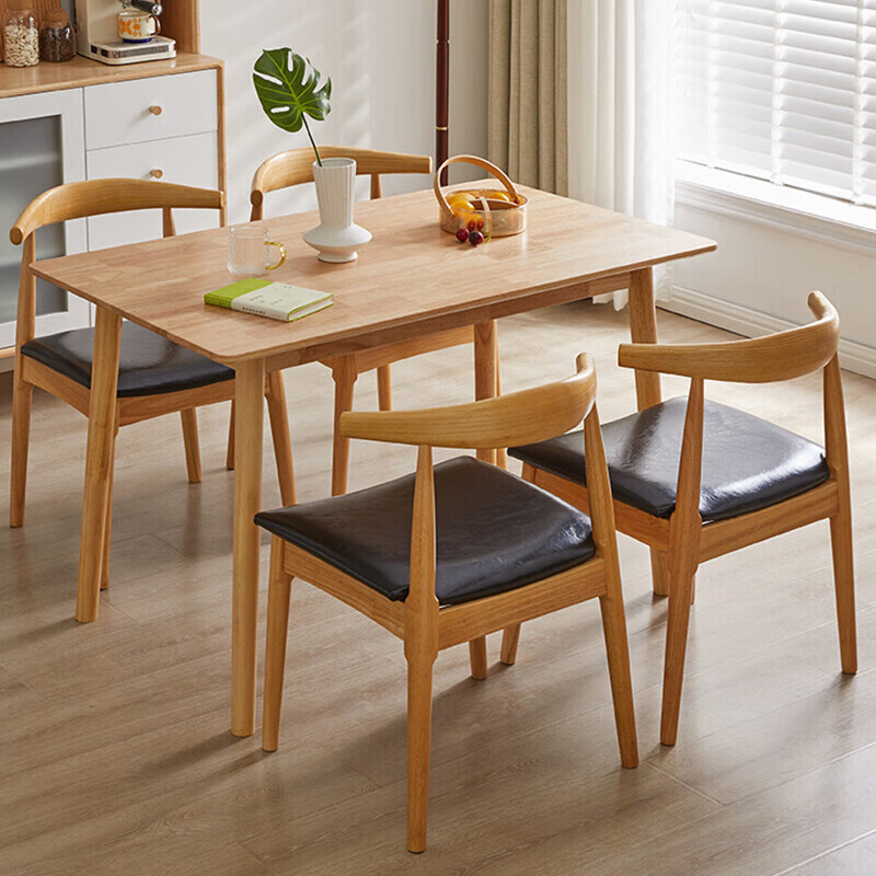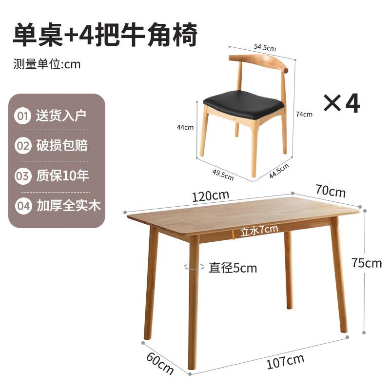 爱必居全实木餐桌家用吃饭桌子餐桌椅组合原木色 120*70单桌+4把牛角椅价格:999.00元!