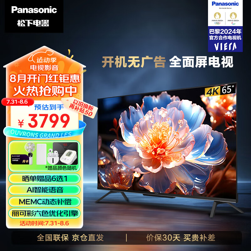 松下(Panasonic)电视LX580 65英寸 丽可彩4K屏MEMC AI语音开机无广告智能电视机TH-65LX580C价格:3799.00元!