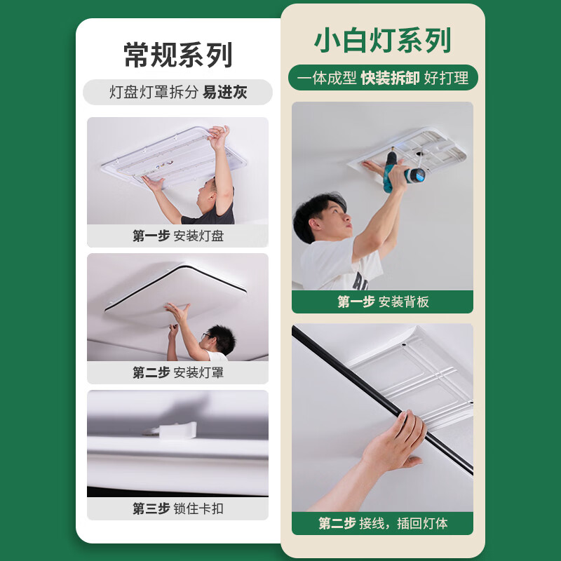 2、现在家里选灯主选简洁大方、护眼灯。看中雷士的这款跟家里风格搭配,然后这种款式也容易安装,日后也好清理和更换配件。期待入住后的使用效果,