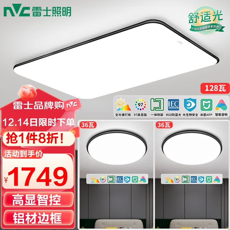雷士(NVC)LED吸顶灯现代简约客厅卧室餐厅灯具全屋智能Ra95小白灯饰黑潮E价格:2186.00元!