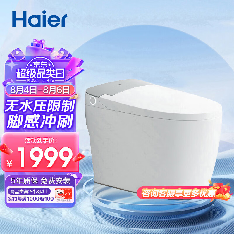海尔(Haier)智能马桶 带水箱无水压限制 脚感冲刷全自动坐便器HR280-D45价格:2499.00元!