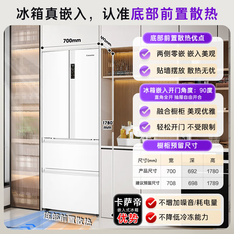 卡萨帝(Casarte)揽光星空418升超薄嵌入式法式家用418升级款冰箱风冷无霜变频BCD-418WLCFDM4WKU1价格:6999.00元!