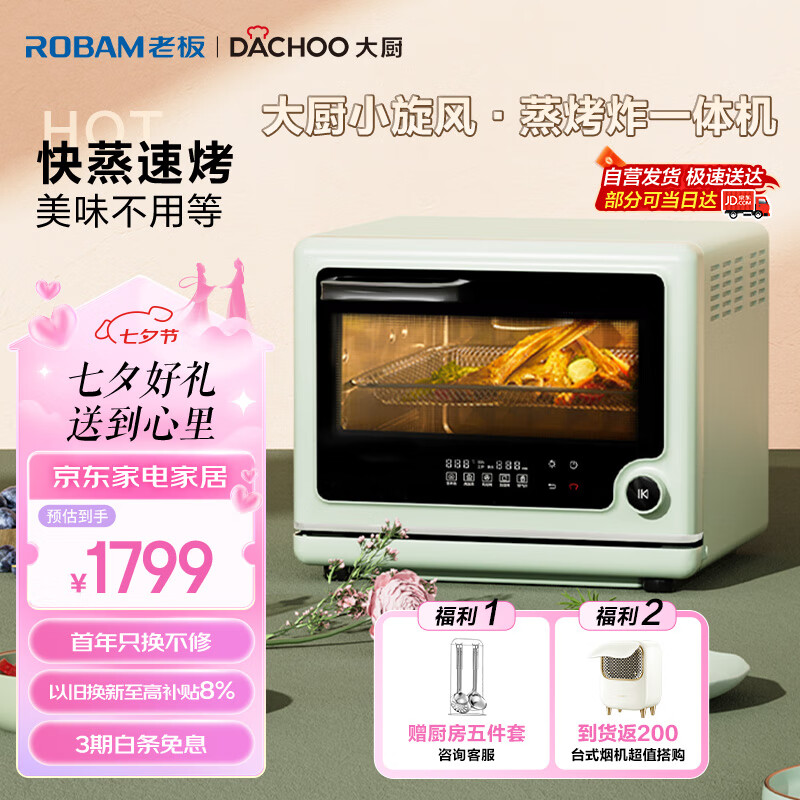 大厨老板蒸烤箱蒸烤炸一体机台式空气炸电烤箱家用DB6M3 24L蒸烤箱柠檬青价格:1781.00元!