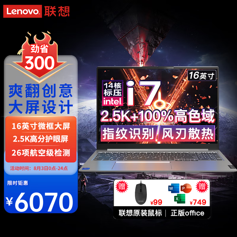 联想(Lenovo)笔记本电脑电掣7 2024满血电竞游戏本16英寸13代标压昭阳高色域设计师学生商务办公手提本 标配:i7-13700H 16G 512G 背光键盘 指纹识别 2.5K超清屏 智能降价格:6370.00元!