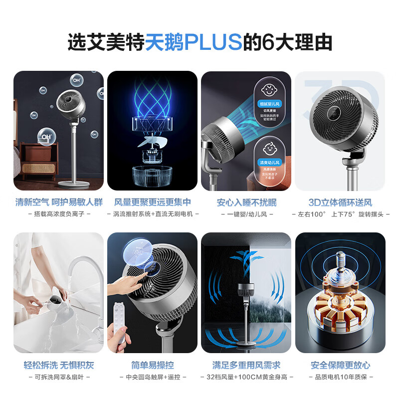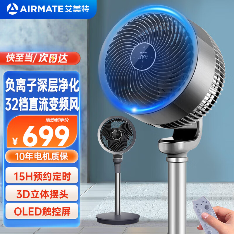 艾美特(AIRMATE)空气循环扇家用电风扇立式落地扇遥控负离子净化直流变频轻音立体送风涡轮换气扇一级能效节能省电 FA23-RD97升级款“天鹅PLUS”星空灰价格:779.00元!