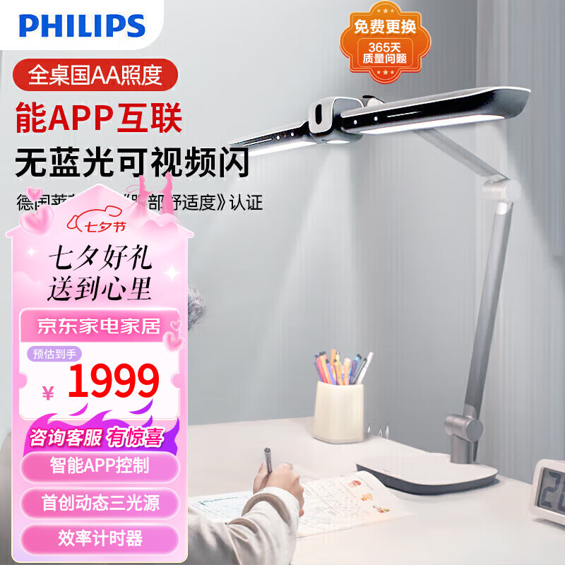 飞利浦(PHILIPS)护眼学习台灯全光谱儿童护眼台灯国AA级学生阅读台灯A7价格:2153.00元!