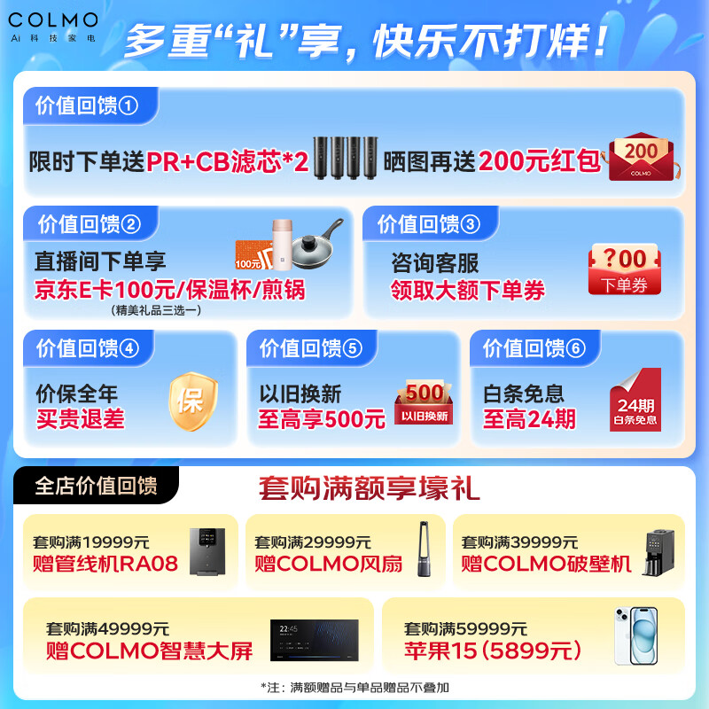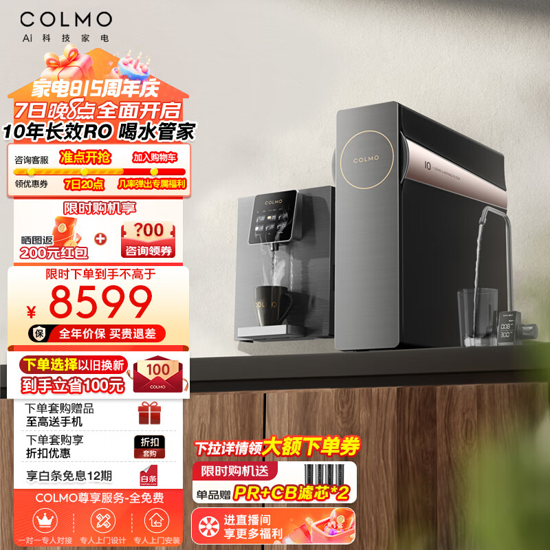 COLMO净水器套装B139+RA08 10年RO反渗透净水机 双出水智能龙头 六档控温管线机价格:8599.00元!