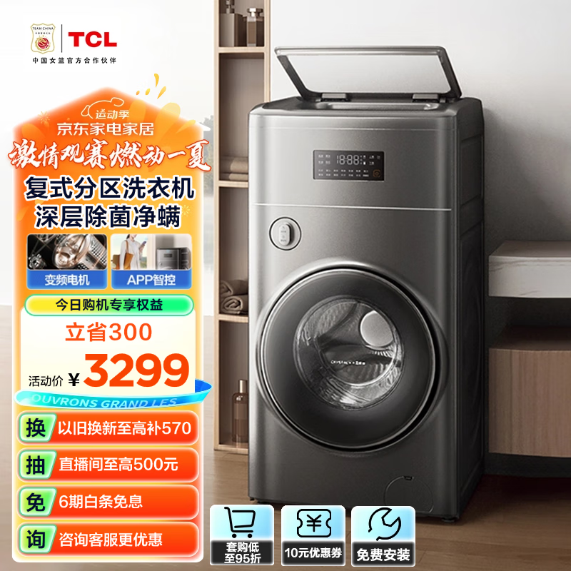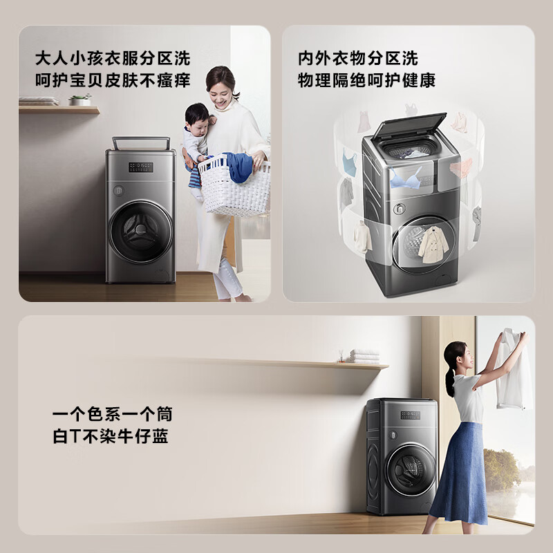 TCL 12KG双子舱·复式分区洗衣机T300 母婴分类洗 除菌除螨 APP智控 双筒全自动滚筒洗衣 G120T300-BYW价格:3299.00元!