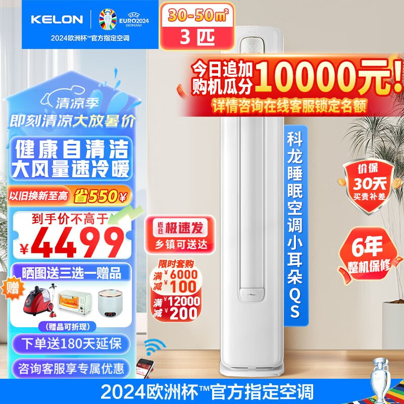 科龙(KELON)睡眠空调小耳朵新一级能效3匹AI省电智能wifi大风量防直吹变频冷暖客厅空调柜机KFR-72LW/QS1-X1价格:4499.00元!