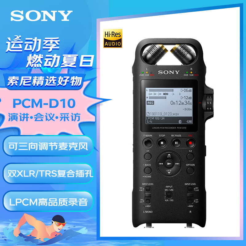 索尼(SONY)专业数码录音笔PCM-D10 16GB 黑色 数字降噪Hifi无损播放 大直径三向双麦克风价格:2999.00元!