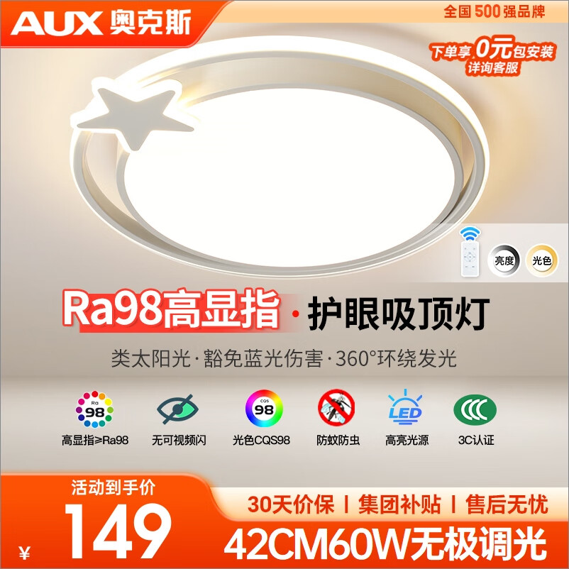 奥克斯(AUX)吸顶灯led卧室灯具客厅灯饰书房阳台灯薄款北欧现代简约ZH-60WS-F价格:212.85元!