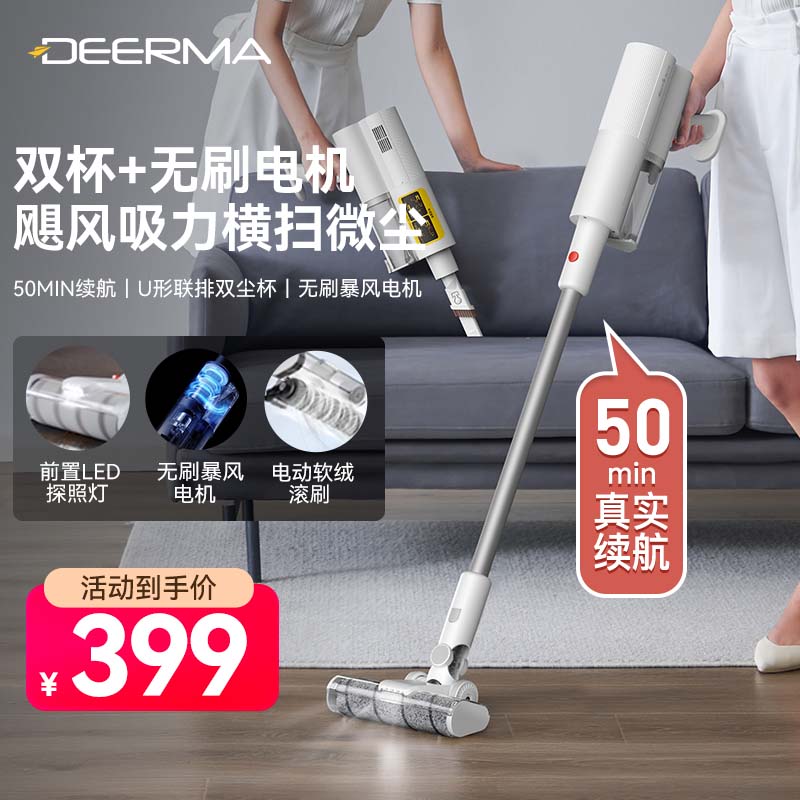 德尔玛(Deerma)D20标配版 无线吸尘器家用手持轻量化吸尘器立式充电强力 宠物大功率大吸力吸尘器价格:399.00元!