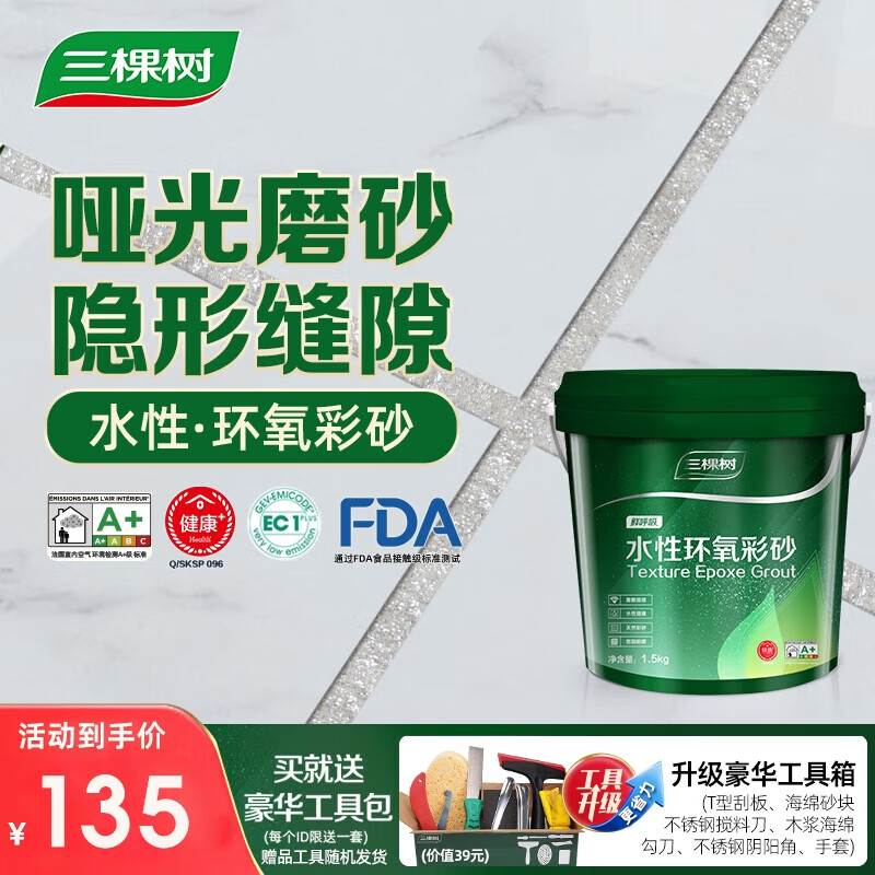 三棵树漆(SKSHU)水性环氧彩砂桶装美缝剂耐磨耐水客厅厨卫地砖瓷砖胶 闪亮银价格:135.00元!