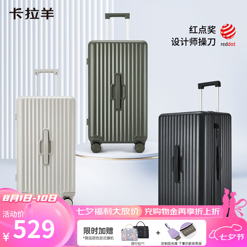 卡拉羊行李箱可登机20英寸大容量拉杆箱男女二八开魔方箱CX8118夏日胡杨价格:629.00元!