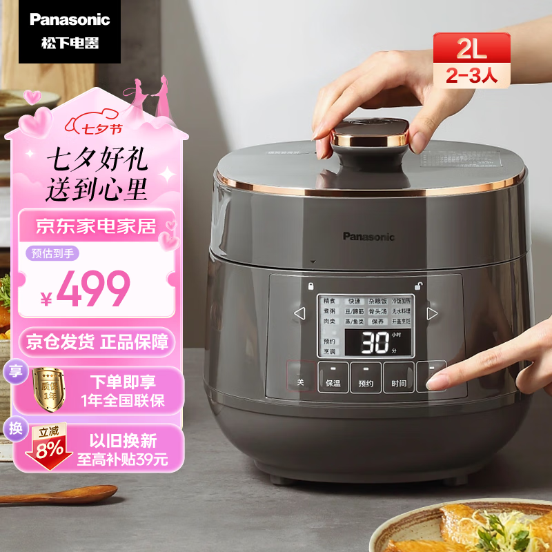 松下(Panasonic)2L电锅 迷你电锅 高压锅 电压锅 电饭锅 可拆洗内外盖 SR-PB201-H价格:469.00元!