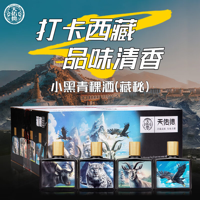 天佑德青稞酒 藏秘(小黑升级款) 清香型白酒 52度 125ml*4瓶*6 整箱装价格:468.00元!