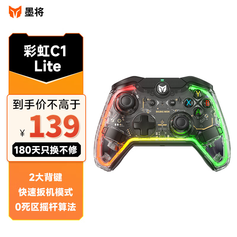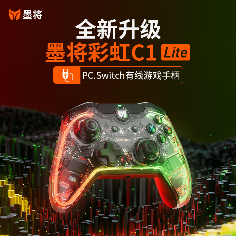墨将 彩虹C1 Lite有线游戏手柄PC电脑COD19喷射战士3xbox360 switch手柄 RGB灯效 扩展背键价格:139.00元!