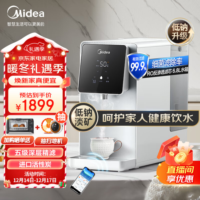 美的(Midea)白泽Pro台式加热净水器低钠净饮机饮水机即热式直饮机净饮一体机远程智控RO反渗透 JR2183T-RO价格:1899.00元!