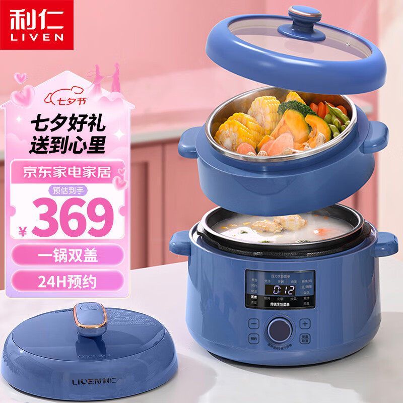 利仁(Liven)电锅高压锅家用2.5升电蒸锅电炒锅电火锅多用锅 小型电高压锅多功能电煮锅 CSJ-D4701价格:409.00元!