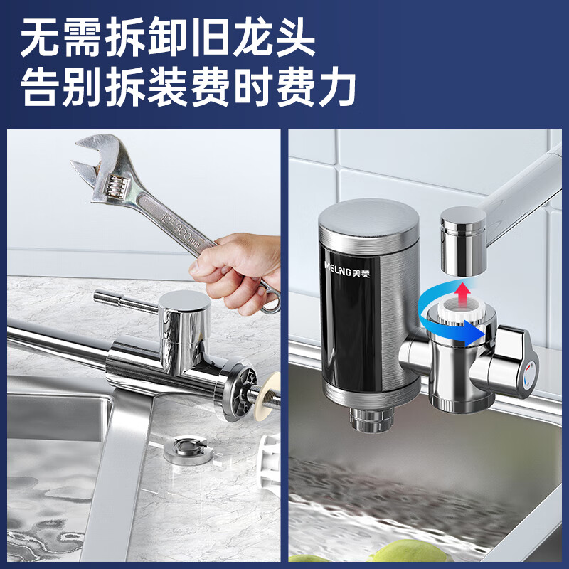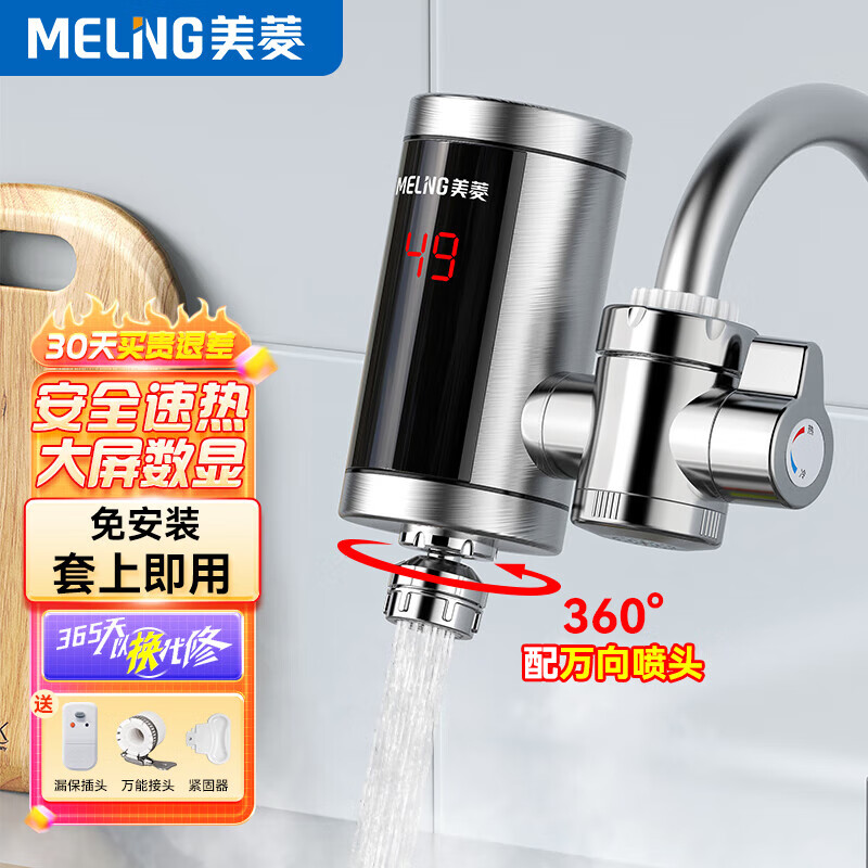 美菱MELNG 电热水龙头快速热厨房宝加热免安装接驳式电热水器冷热两用即热式加热器MF-D309漏保款价格:139.00元!