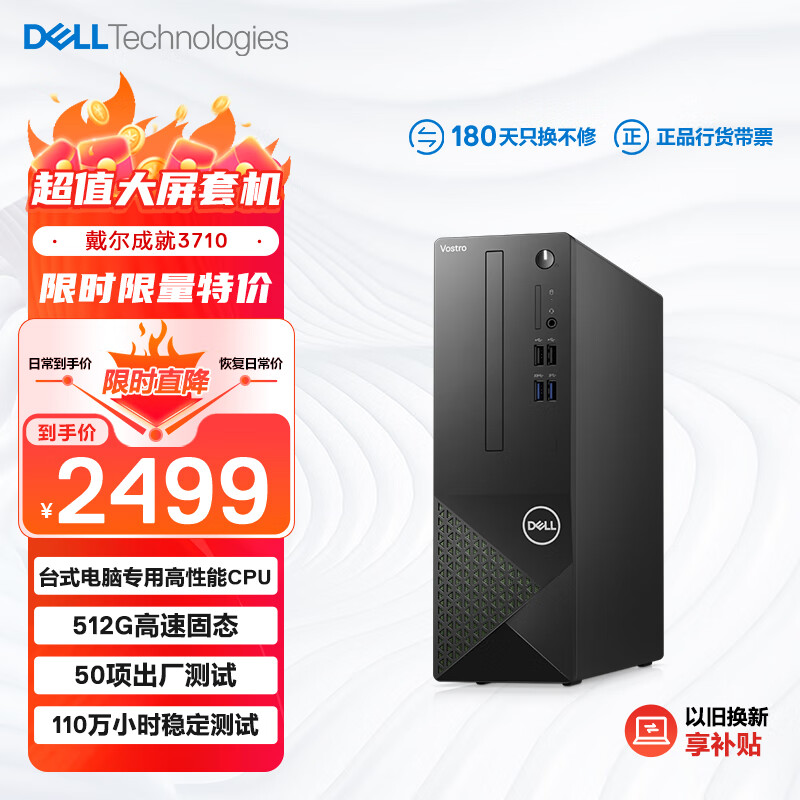戴尔(Dell)成就3710 台式电脑主机(酷睿12代i3-12100 8G 512GSSD WiFi Win11)单主机 高性能CPU价格:2499.00元!