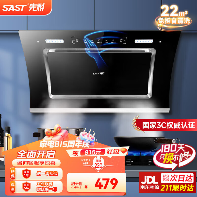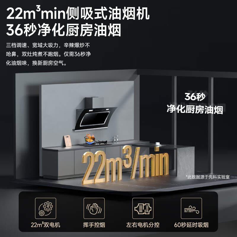 先科(SAST)油烟机侧吸式抽油烟机燃气灶吸油烟机灶具两件套厨房抽烟机家用烟灶套装脱排大吸力小户型低噪静排 不包安装/22立方爆吸+智体感+自清洗价格:699.00元!