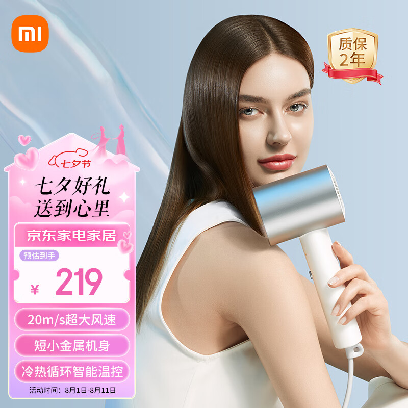 米家 【七夕情人节礼物】小米水离子吹护机 双水离子护发 电吹风机 H500 礼物推荐价格:219.00元!